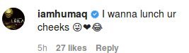 Commenting on the picture of Varun, Huma Qureshi expresses that she is more interested in eating his cheeks. Huma wrote: “I wanna lunch your cheeks”.