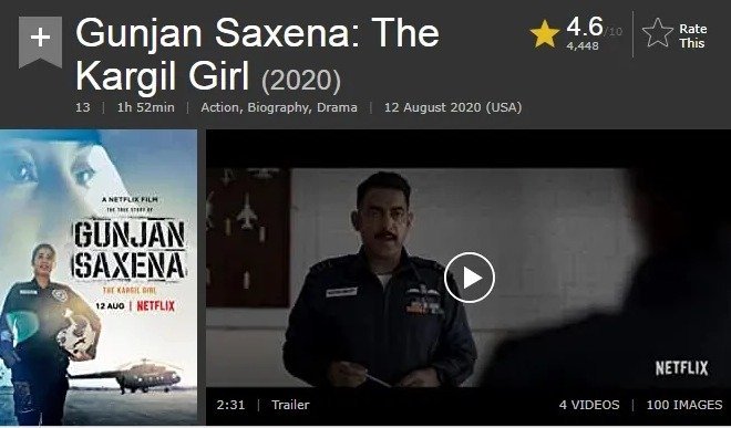 Check out the screenshot of Gunjan Saxena: The Kargil Girl’s IMDb page below: