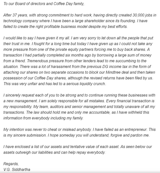 The founder of the biggest coffee outlet chain, Cafe Coffee Day’s founder VG Siddhartha put the nation in shock when he vanished suddenly from his car and gone missing. He left a note which showed he was disappointed being a business as he wrote, ‘I gave up’.However, the authenticity of the letter is still under suspicion. After 36 hours, his dead body was found by local fishermen in the Nethravathi river, Karnataka.