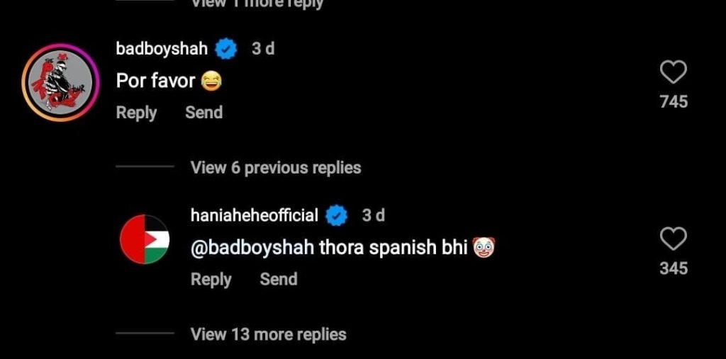 Hania Aamir also sent Badshah birthday wishes earlier in November 2023 by posting a selfie on her Instagram story. The Instagram story was captioned, “Happy Birthday to the baddest boy in town.” Reposting the story, he replied, “Thank you, you extremely talented human being.”