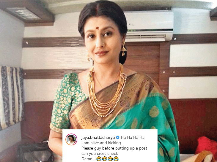 Someone shared a post on Facebook with her photo written on it, “Another loss by Corona, rip Jaya Bhattacharya mam”. Reacting to this, Jaya wrote, “Hahahaha, I am alive and kicking. Please check before putting up a post”.