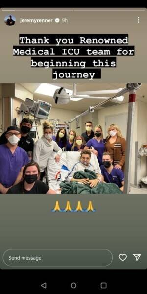 Posting the picture, Jeremy Renner wrote, “Thank you Renowned medical team for beginning this journey (Sic).” Here’s the screenshot of the story: