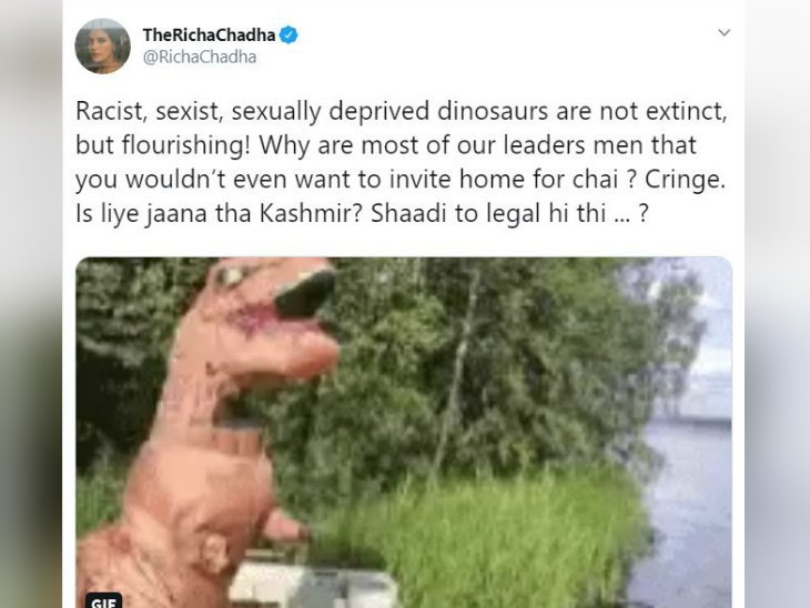 Bollywood actress Richa Chadha slammed him for his shameful and chauvinistic remarks against Kashmiri women. She tweeted: