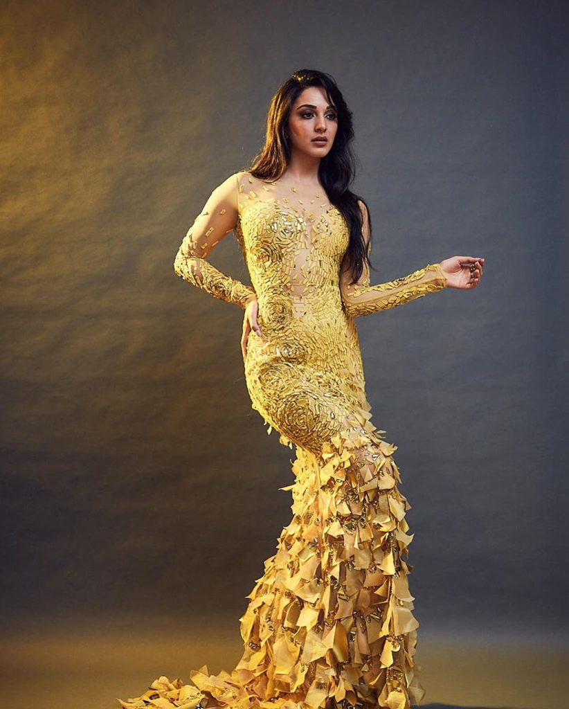 Kaira Advani has recently made her dreamy appearance in a yellow mirror gown which was among the stunning ensemble she recently wore. The actress has turned her fashionista mode by nailing her dress with smoky eyes and neutral tone lip gloss and flawless makeup base. Kiara Advani makes sure to steal our breath away as she decks up for the shoot. Check it out :