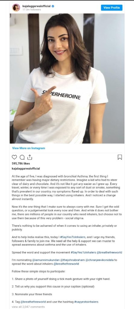 She wrote in the post that inhalers are quite important. Kajal said, “When I was diagnosed with bronchial asthma in myself. I remember well that my favorite things at that time were forbidden from eating. Imagine how difficult it would have been for a child to stay away from dairy products and chocolate. It was not easy for me. As I grew up I began to understand things.”
