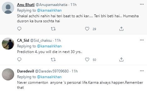 Soon after reading this tweet netizens started pouring out their anger and trolled him badly. One wrote, “Kabhi to kisssi ke bare mein achha bol diya karo.”While another one said “This is thoda extra. Please refrain from making such comments about personal lives of people.”