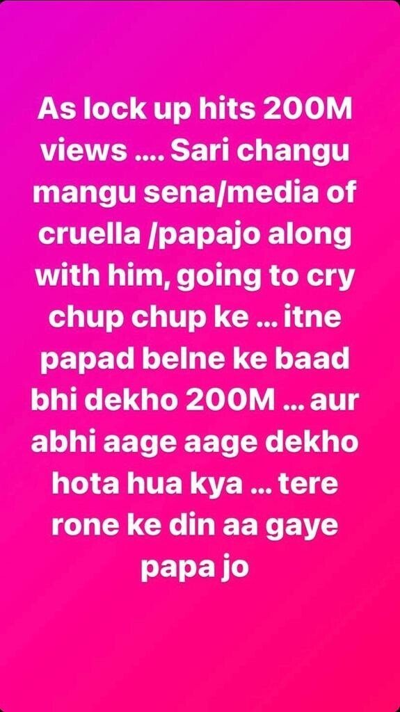 Currently, Kangana made her OTT debut with the show‘Lock Upp’ which is doing exceptionally well these days and now it has grabbed the eyeballs of many. Since the time it aired people took interest in the show and now it has crossed 200 million views. Hearing the news the actress went excited and took to her social media platform with the post that reads:“As lock up hits 200M views …. Sari changu mangu sena/media of cruella /papajo along with him, going to cry chup chup ke… itne papad belne ke baad bhi dekho 200M aur abhi aage aage dekho hota hua kya, tere rone ke din as Gaye papa jo.”