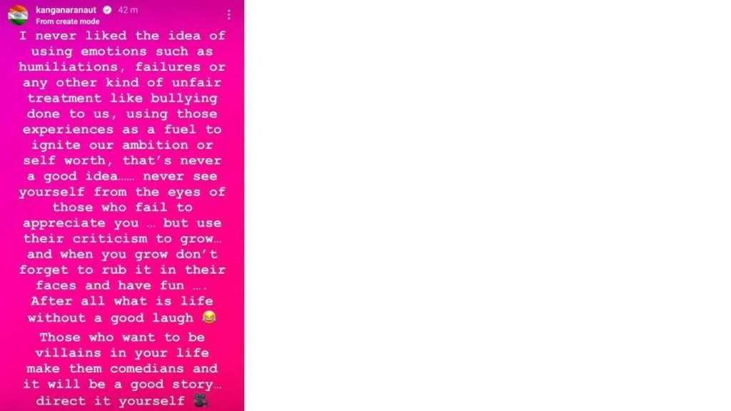 The note, posted on her Instagram Stories, read: “I never liked the idea of using emotions such as humiliations, failures or any other kind of unfair treatment like bullying done to us, using those experiences as a fuel to ignite our ambition or self worth, that’s never a good idea never see yourself from the eyes of those who fail to appreciate you but use their criticism to grow… and when you grow don’t forget to rub it in their faces and have fun. After all what is life without a good laugh. Those who want to be villains in your life make them comedians and it will be a good story… direct it yourself.”