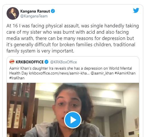 Writing her response to KRK’s tweet, Kangana said – At the age of 16, I was facing physical torture. At the same time, she was taking care of her sister on her own, on which the acid was thrown. At the same time, the fingers of the media used to lift on me. There can be many reasons for depression but it is often a little difficult for children of broken homes. Therefore, it is necessary to have a traditional family system.