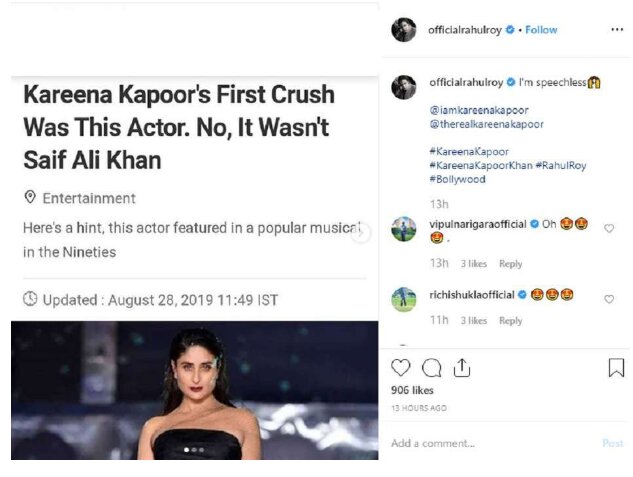 Rahul took to social media to post a snapshot of Kareena’s revelation article along with his reaction on it and captioned it, “I’m speechless”. Soon, fans of the actor dropped in comments on his post where they confessed that he was their first crush as well.