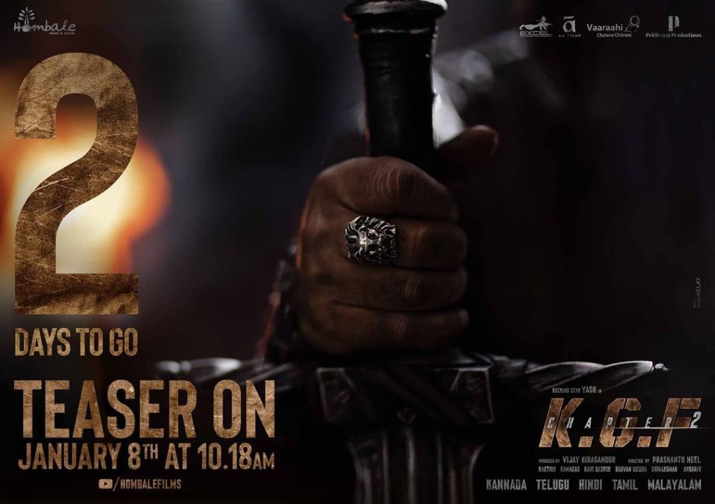 Makers took to their social media post and wrote “Nation needs to know how did Adheera survive? #KGFTIMES #Volume3 #KGFChapter2TeaserOnJan8 at 10:18 am on @hombalefilms YouTube.”. The poster shared by them has made the audience quite curious as it shows a glimpse of Sanjay Dutt onscreen character. And the wait will be over after 2 days. Well it’s not just the filmmakers but also Sanjay himself took to his social media post to make an announcement and wrote “2 days to go Presenting #Adheera. #KGFChapter2TeaserOnJan8 at 10:18 AM on @hombalefilms Youtube”