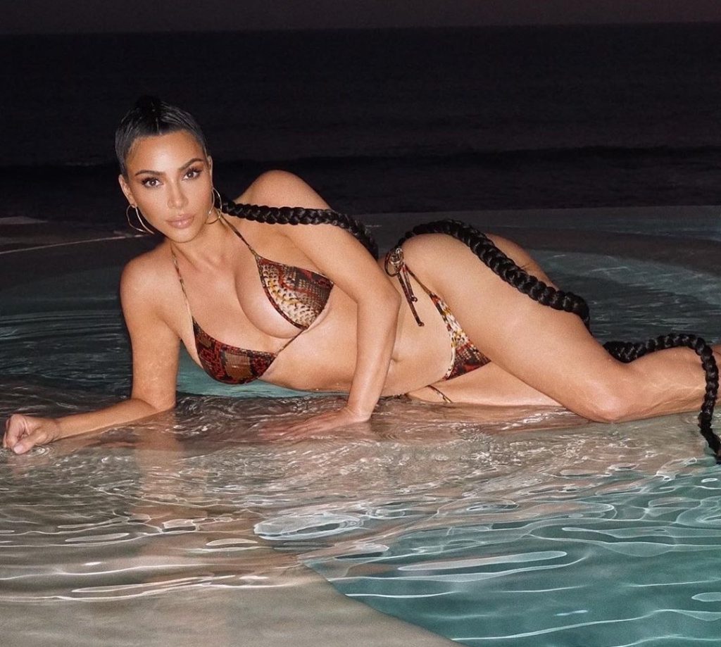 Kim Kardashian shared her very bold bikini photos on Instagram account. In these pictures, Kim is seen in a printed brown bikini. She has shared her three pictures, in which the most prominent is the hair reaching her feet. At the same time, people are shocked to see such a long peak of Kim. She has given many sizzling poses in this look, which her fans are very fond of. In one of the photos, Kim is seen lying in the pool, while in another she is giving a glass of drink in her hand and posing with shades. Kim is looking hot in all the pictures as usual.