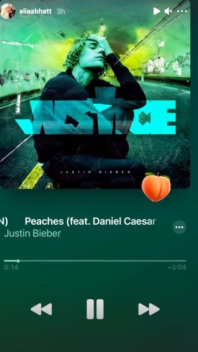 In the video, we can see her getting for the shoot. And can hear her say that she is a ‘very good DJ’. And after that when she was asked to show her playlist she denied it and said “No, I am very possessive about my playlist. Can I play it for you?”She then quickly plays Peaches and says, “This is my favorite song!” grooving to the track. And coincidently Alia also pinned the same song on her stories.