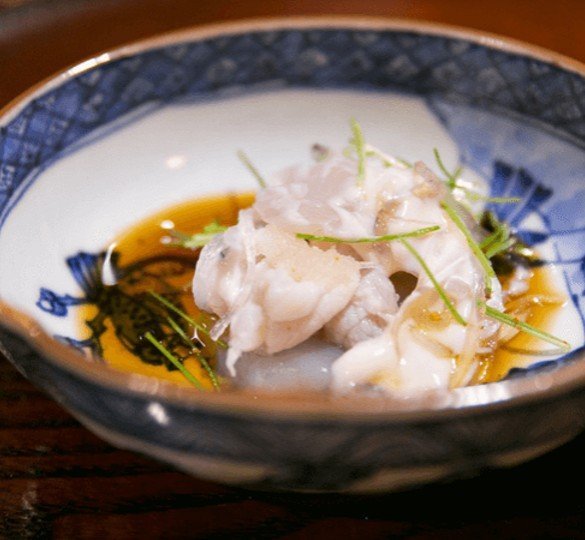Fugu garnished and presented in a bowl!