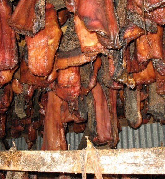 It is a shark fish which is the national dish of Iceland. It is fermented for nearly five months to remove the poison. Then it is sold in stores to be cooked.