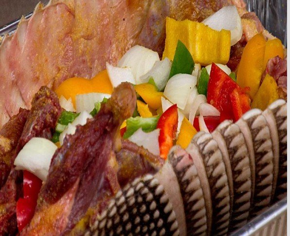 This is the dish from Florida cooked with veggies in it’s own shell. Crazy isn’t it?