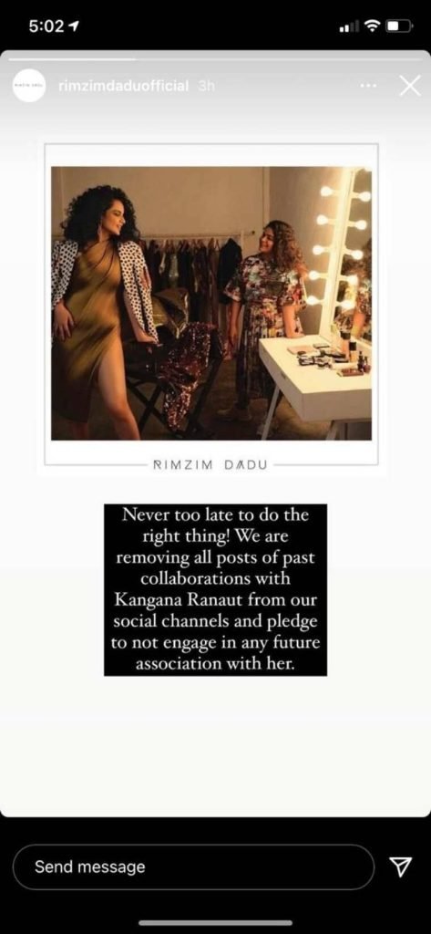 Soon after the Twitter closed the doors for Kangana Ranaut, after she was seen violating the rules of the Twitter account. Also decided not to work with kangana. Taking to their respective social media accounts the two designers Anand Bhushan and Rimzim Dadu issued the statement saying that our brand doesn’t support hate speech. And they are setting apart themselves and their brands with the actor.