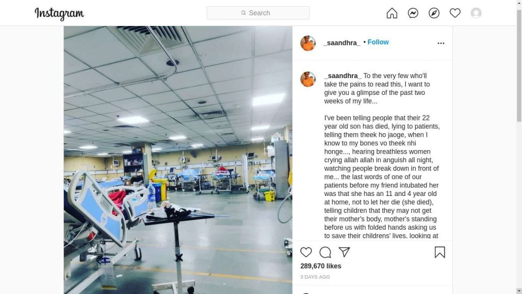 Actually, a female doctor Sandra (username) wrote a post on Instagram three days ago on Corona virus, which has gone viral. By the time the news was written, more than 3 lakh people have liked this post and more than 5100 have commented on it. In the post, Sandra recounts the plight of health workers in Kovid-19 hospitals and the heart-wrenching incidents they face, in which she tells people about the condition of their family members infected with Corona virus disease and Then they are overcome by their pain.