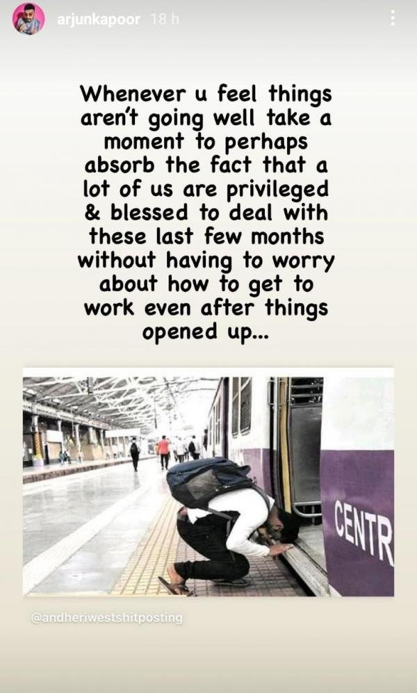 Taking to their respective social media accounts Arjun wrote “Whenever u feel things aren’t going well take a moment to perhaps absorb the fact that a lot of us are privileged & blessed to deal with these last few months without having to worry about how to get to work even after things opened up.” While Malaika captioning the same image wrote “This one hit me hard.. I feel ya brother #Checkyourprivilege.”