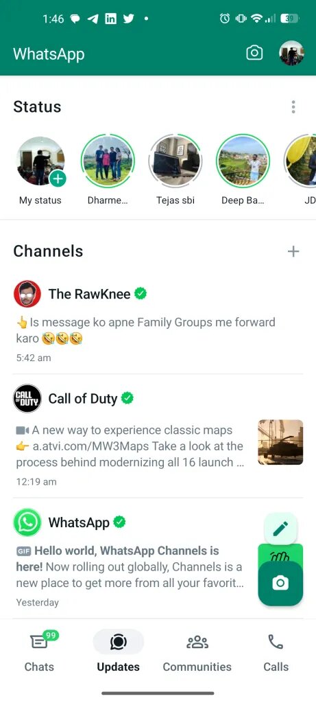The function, which is distinct from the users’ conversations and acts as a one-way broadcast mechanism, will disseminate updates on a new tab named Updates. It should be noticed that Updates have completely taken the role of the previous Status tab. WhatsApp, however, displays the elliptical Status updates at the top of the Updates page.