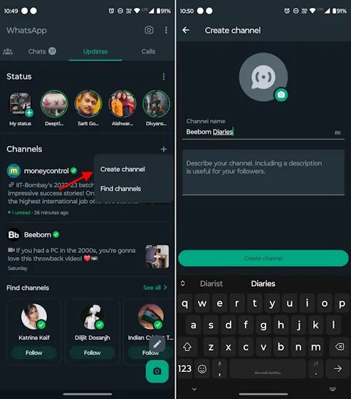 Go to the Updates tab and tap on the plus symbol next to WhatsApp Channels when Meta makes it accessible to you. Choose Create Channel, press Continue, and then follow the on-screen instructions by tapping. Create a Channel name that you may modify at any moment. Click Create Channel after adding a channel description and icon.