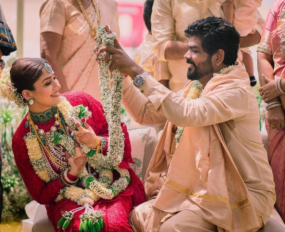 Filmmaker Vignesh Shivan has posted the first photos from his marriage with actress Nayanthara. The two got hitched at the Sheraton Grand, Mahabalipuram in presence of friends and family. In attendance were stars like Rajinikanth, Shah Rukh Khan, Suriya, and others.