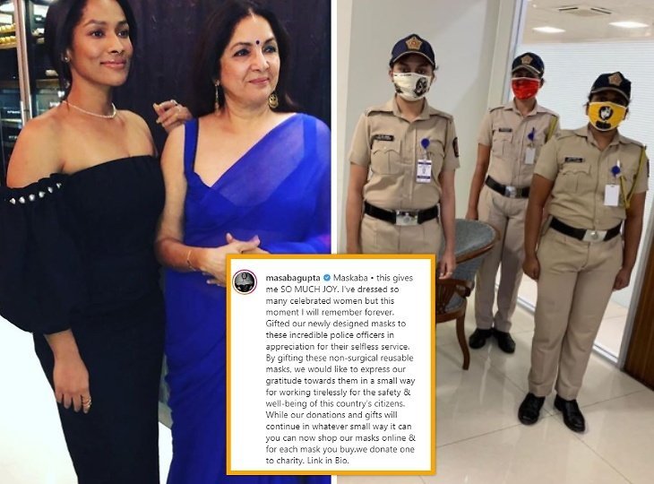 Masaba, daughter of actress Nina Gupta, has thanked the police officers for their service while donating them designer masks. Fashion designer Masaba Gupta recently shared some pictures of donating the mask from her Instagram account.