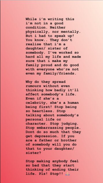 She took to Instagram and wrote all these rumours are baseless. She wrote, “While I am writing this, I am not in good condition. Neither physically nor mentally. But I had to speak up.” Read the full post below: