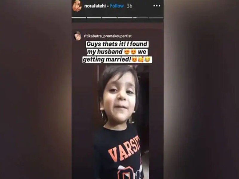 Everyone is crazy about the beauty of Nora Fatehi. Recently, a small fan has cutely proposed marriage in front of Nora. The video shows a little kid expressing his desire to marry Nora. Nora Fatehi has shared the video of this child on her Instagram story. In this video, the child is saying that he wants to marry ‘Dilbar Girl‘.