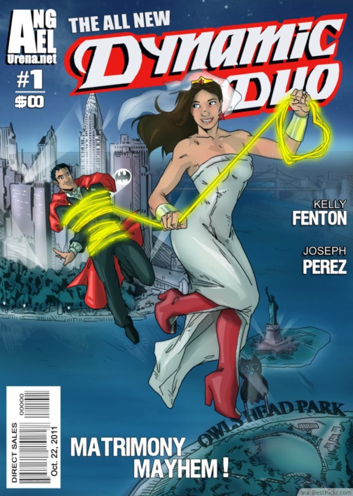 How about creating a comic book’s cover as your wedding invitation? The groom is already in the clutches by the way! Lol