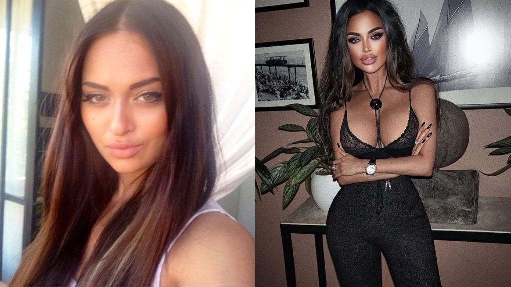 If you compare these two pictures, you might think that they depict different people, but this is not the case. It is almost impossible to discern the commonality between the faces on the left and on the right. In the photo, we see the Romanian singer Andu Adam before and after plastic surgery. It is easy to guess that the girl repeatedly went under the surgeon’s knife, changing the traits given by nature. The celebrity is not only fond of beauty procedures and surgeries, but also photoshoots his pictures a lot before posting them on Instagram. Due to the abundance of filters and masks, Anda’s face seems drawn, like from a fantastic cartoon.