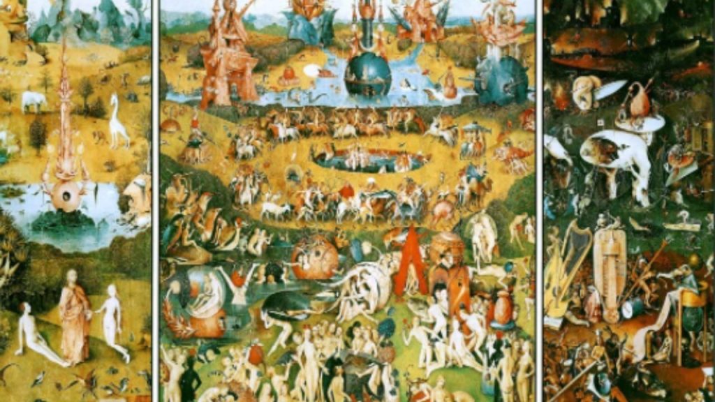 Imaginary animals, grotesque demons and chimeras, fantasy landscapes and hallucinated scenarios: they look like scenes from a particularly successful film, instead it is a late fifteenth century painting. The Garden of Earthly delights is a huge puzzle overflowing with details divided into three panels, modeled on the triptychs used in churches. Why Heironymus Bosch choose this format for an obviously different work? And what did his incredible visions tell. Beyond the references to Hell and Heaven, a field of symbols and possible allegories extends as far as the eye can see in the work done by him.
