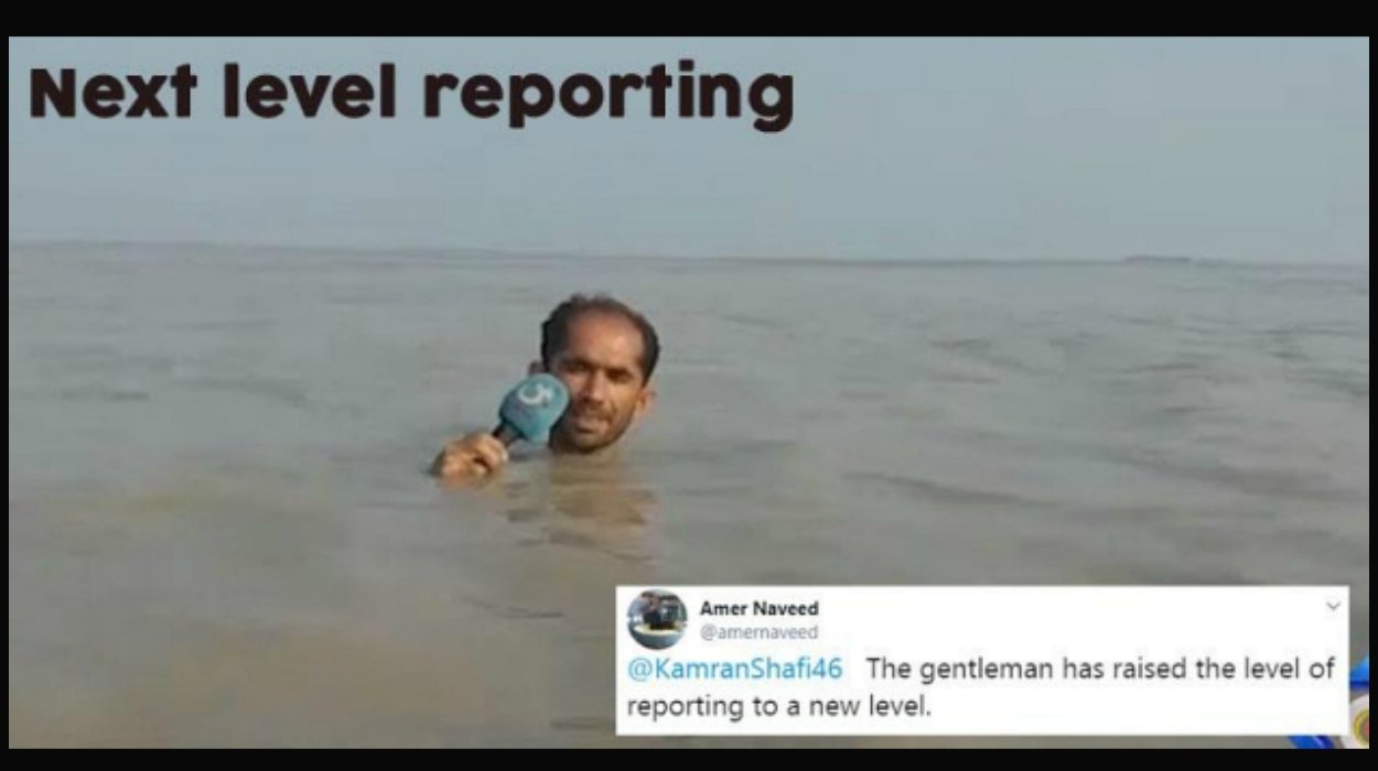 A video of a Pakistani journalist turned into a web sensation for his excellent and out of the case revealing abilities. He can be seen reporting from neck-deep floodwaters. He is a GTV News journalist Azadar Hussain.