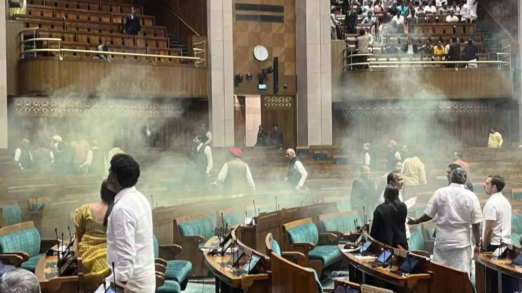 During Zero Hour, two individuals by the names of Sagar Sharma and Manoranjan D leaped from the visitors’ gallery into the Lok Sabha chamber while yelling protests. They used a canister to spew yellow gas, but the MPs eventually overwhelmed them.