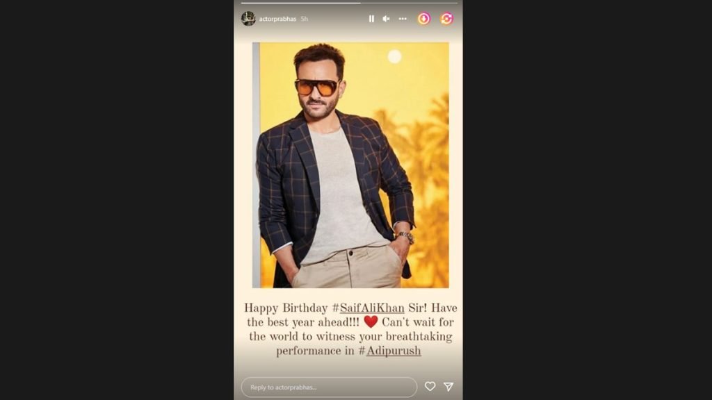 Prabhas took his Instagram story and penned, “Happy Birthday #Saif Ali Khan sir! Have the best year ahead !!! Can’t wait for the world to witness your breathtaking performance in #Adipurush.” He also shared a stylish picture of Saif.