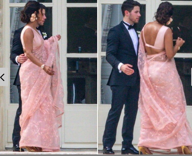 But what caught the attention was Priyanka Chopra didn’t wear western but Indian traditional clothes. She was donned in a light-pink Sabyasachi Saree whereas her husband Nick Jonas wore a black tuxedo.