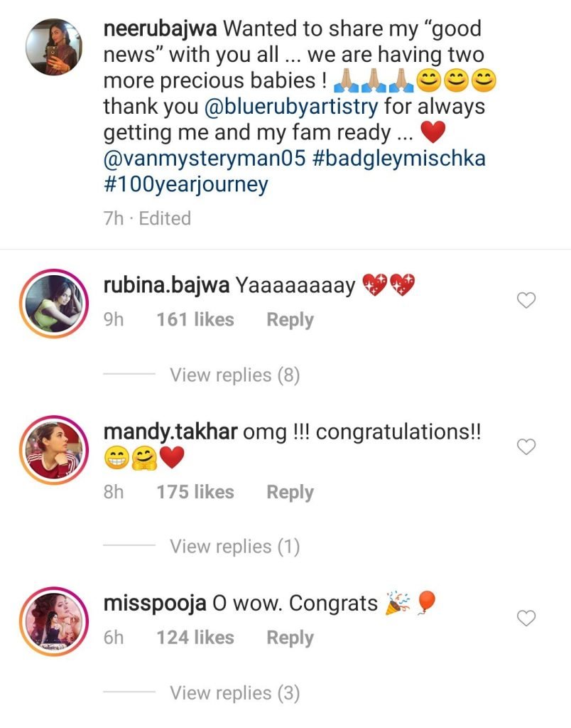 The picture followed by the caption which said that she will be a mother to three kids captured everyone’s heart. The comment section flooded with congratulatory messages. The picture showed Neeru with her baby bump.