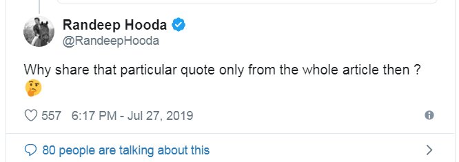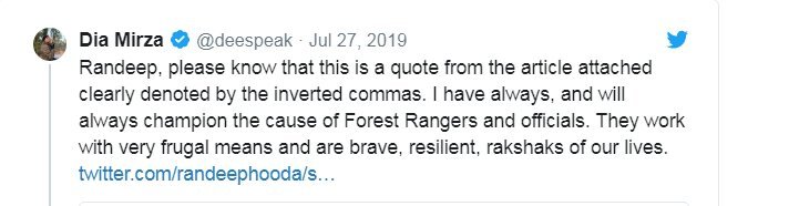 However, Randeep called her out for selectively quoting the part which had indicated towards the alleged failure of forest officials.