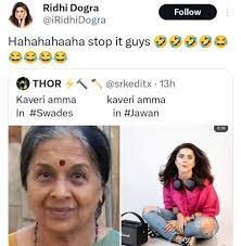 Shah Rukh Khan, who plays the protagonist role in the newest movie Jawan, refers to Ridhi Dogra’s character as Kaveri Amma. Atlee directed the movie. Hardcore fans were also reminded of Swades while his supporters showered the new picture with unheard-of adoration, making it the largest opening Hindi film of the year. The internet is currently flooded with Kaveri Amma-related memes, only one day after Jawan’s release. Ridhi has responded to the memes as well.
