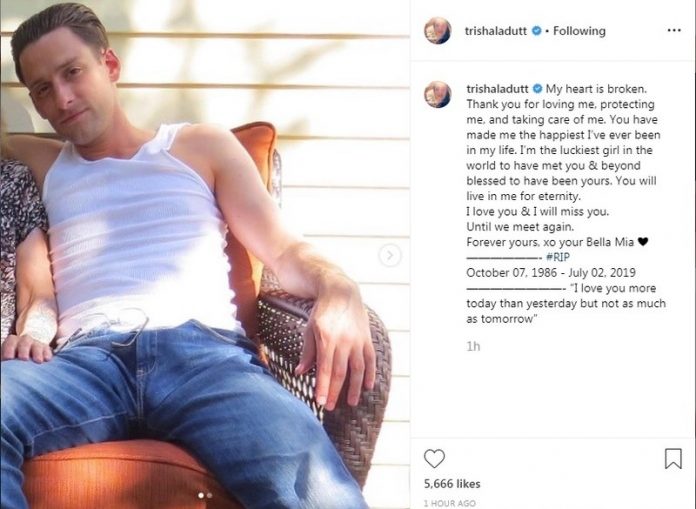 Trishala took to her Instagram account and shared the saddest news. the starkid wrote, “My heart is broken. Thank you for loving me, protecting me, and taking care of me. You have made me the happiest I’ve ever been to. I’m the luckiest girl in the world to have met you and beyond blessed to have been yours. You will live in me for eternity. I love you & I will miss you. Until we meet again. Forever yours, xo your Bella Mia #RIP October 07, 1986 – July 02, 2019. I love you more today than yesterday but not as much as tomorrow.”