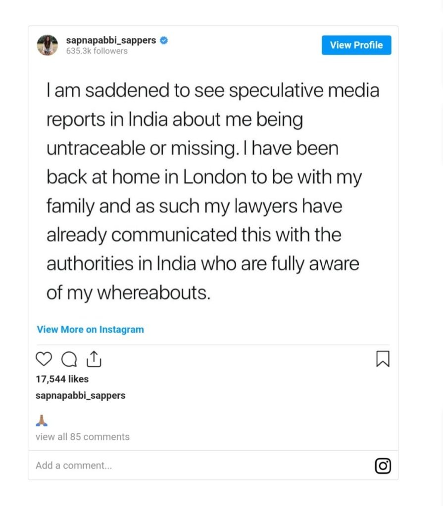 After the name of Sapna Pabbi came to light in the drugs case, the NCB has issued summons to her. But it is being said that after the summons was issued, Sapna Pabbi left the country and shifted to London. But actress Sapna Pabbi has rejected it. Pabby dismissed this in a statement on her Instagram, saying that she had gone to London to visit her family and that the authorities were aware of this.