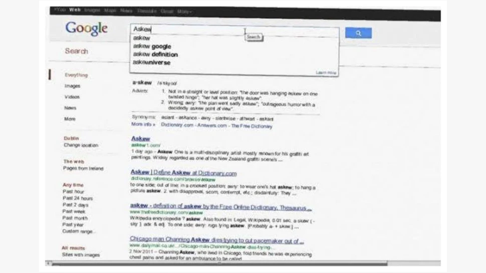 Type “Askew” in the search bar, hit enter and your page will tilt to one side. But don’t worry, there is no problem with the screen. Only the text appears to be tilted downwards. It will be fixed once you go to the new page.