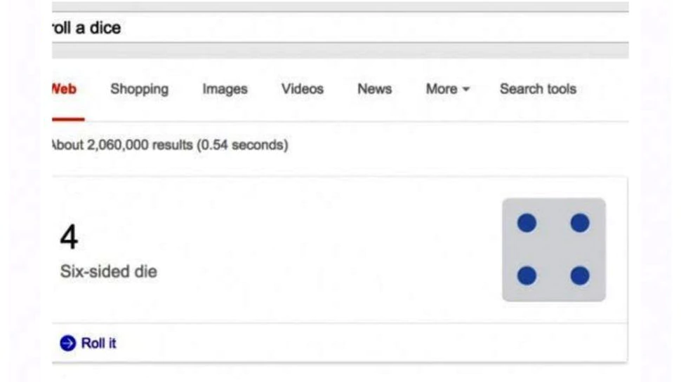 When you play a board game, you roll a dice. Suppose, you don’t have a dice or you have lost it, then Google gives you the option to roll the dice too. Just type “Roll A Dice” and you get a virtual dice.