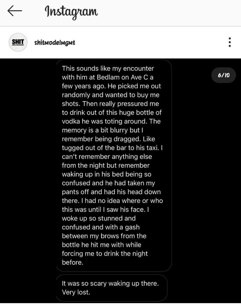 “He drugged two of my friends in 2014”, we can read in the publication gathering the testimonies. “He raped my friend. He put pressure on her to join him and have sex with him, even though my friend is not gay. “