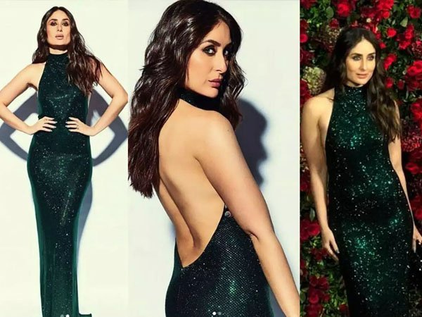 Talking about this look of Kareena Kapoor, she is wearing a gown with a deep green halter neck. Her backless gown is quite glamorous. Kareena Kapoor has a deep green gown with nude makeup and wavy hairstyle.