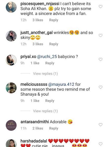 She shared a lot of pics and videos from the vacation. One of her pictures is getting viral in which she is looking a bit old. 40 years old Soha shared a cute picture of her with daughter Inaya Naumi Khemu. She captioned the picture as: “Babycino anyone?”