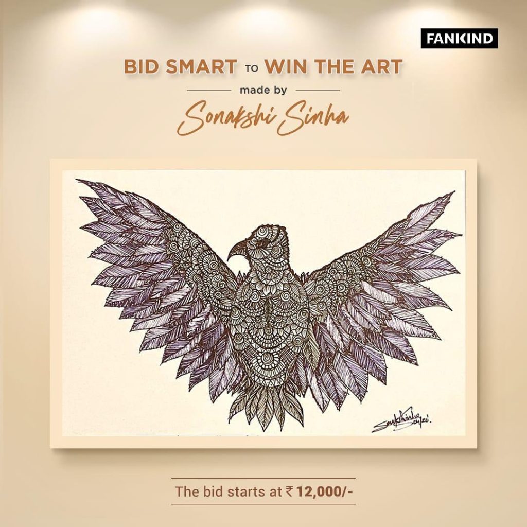 Sonakshi Sinha has shared pictures of her artworks on her Instagram account. She has stated the price of her starting bid in the auction. Where you can see what the starting price of the artwork. A glimpse of her beautiful artwork is shared below.
