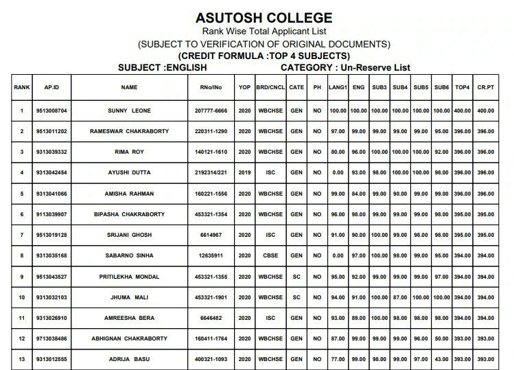 A screenshot of the merit list has gone viral on social media. Take a look: