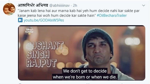 When Sushant said "we can't decide when we are born and when we die, but we can decide how to live our life" , I started crying. #DilBecharaTrailer