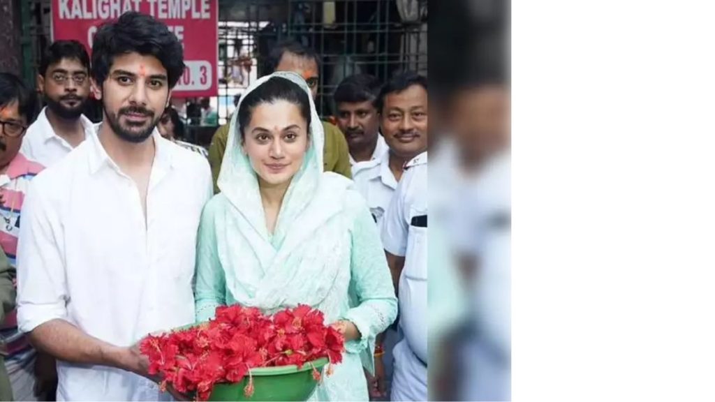 Taapsee and Pavail were likewise seen at the Kalighat Temple this morning offering pujas and seeking blessings from Maa Kaali.